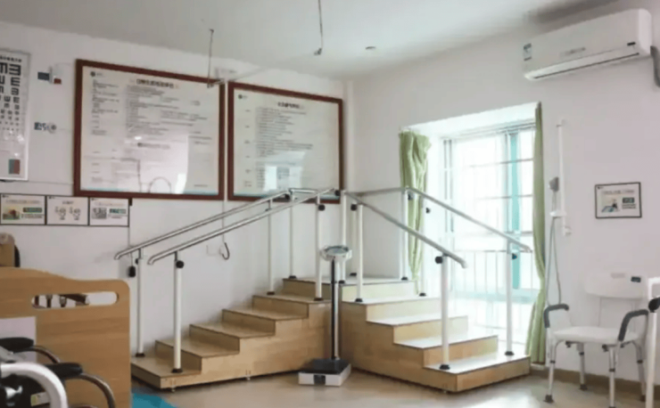总建筑面积8000平方米的机构内,所有居住空间均融入40余处适老化设计:房间内采用圆角家具、防滑地胶、L型卫浴扶手及可三段调节的进口护理床;公共区域走廊宽度≥1.8米,全楼采用无障碍通行系统,每层独立设置客梯与医梯;空中花园铺设防滑地砖,种植薄荷、金银花等药用植物,既美化环境又提供自然疗法素材。地下层6000平方米人防设施改造为文化娱乐中心,涵盖书画阅览室、棋牌室等功能区,满足长者多样化需求。