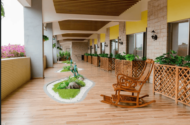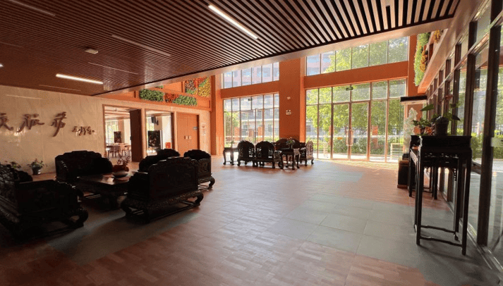 机构以“低密度、高绿化”为设计原则,建筑层高仅4层,搭配岭南园林景观,形成通透舒适的居住环境。6000平方米休闲广场直通麓湖公园,长者可随时漫步绿道、观鸟赏花;园区内种植广府特色植物如木棉、榕树,结合四季花卉布局,营造“月月有花、季季有景”的视觉享受。此外,1500平方米空中休闲农场划分无障碍种植区,长者可体验农耕乐趣,收获的有机蔬果直接供应机构食堂,形成“种植-烹饪-健康管理”的闭环。