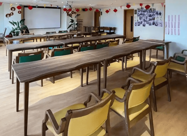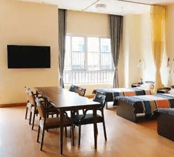 针对双人间的长者,院内贴心设置了可调节隔断,长者可根据需求灵活调整,既保障了彼此的隐私空间,又不影响日常交流;多人间则采用了圆角家具设计,有效避免长者碰撞受伤,搭配防滑地板进一步降低安全风险,同时宽敞的空间布局为喜爱社交的长者提供了互动交流的平台,让他们在共同居住中收获友谊,丰富晚年生活。