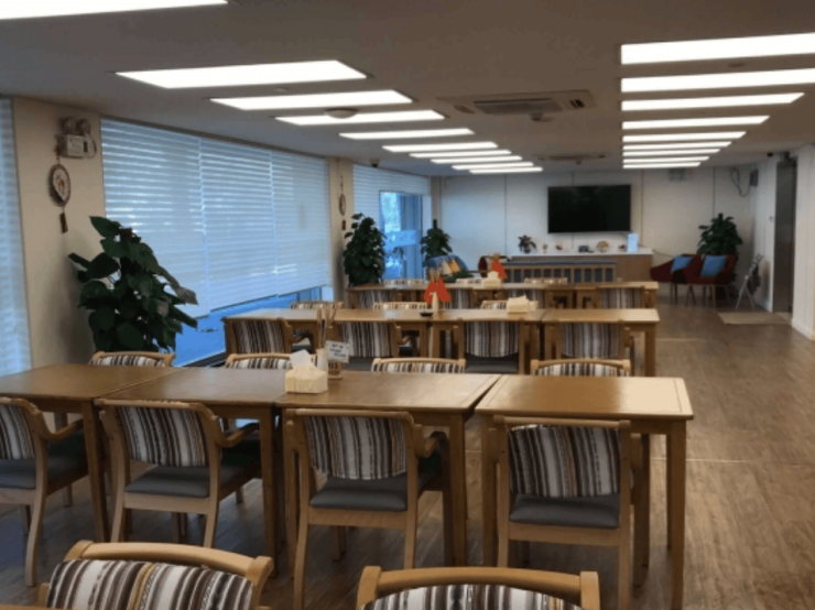 公寓在环境打造上格外注重长者的居住体验,内部建有大型中庭花园,搭配宽敞的户外活动区域,随处可见的绿荫让整个公寓充满生机与活力。中庭花园与户外活动区域不仅是长者休闲放松的理想场所,天气晴好时,长者可以在花园中散步、休憩,呼吸新鲜空气,感受自然绿意;也可以与其他长者在此交流互动,开展简易的休闲活动,在惬意的氛围中舒缓身心,丰富日常休闲生活。这种绿意环绕的居住环境,为长者营造了清新、舒适的生活氛围,助力长者身心健康。