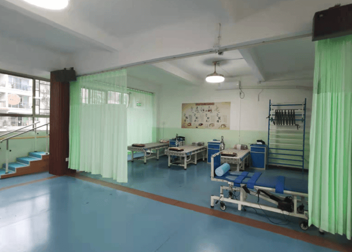 院内设有康复医学中心,配备物理治疗室、作业治疗室及语言训练室,引入下肢康复机器人、平衡训练仪等先进设备,并设置“健康小屋”提供自助体检服务。针对认知症长者,专区采用荷兰蒙德里安色彩疗法设计墙面,配备防走失定位手环与智能监控网络,通过怀旧场景、多感官刺激等非药物干预手段延缓病情进展。