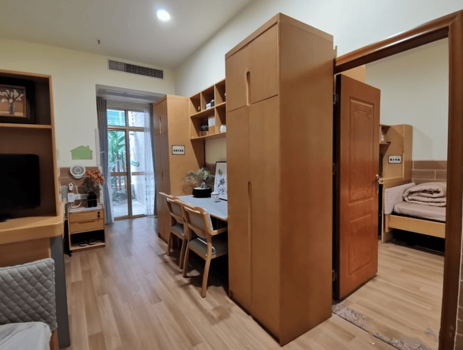 基础费用包含食宿、基础照护及公共设施使用,其中单人间月费6500-8000元,面积30-35平方米,配备独立阳台与卫浴,保障隐私;双人间月费4200-5500元/人,分床设计,床间距≥1.1米,兼顾经济性与舒适度;家