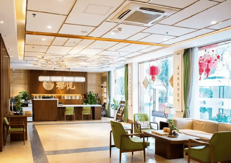 机构总建筑面积5000平方米,共8层,规划156张床位,涵盖标准双人房、江景套房等7种房型。所有房间均采用无障碍设计: