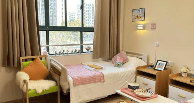 安全设施完备:均配备独立卫浴、智能护理床、紧急呼叫系统及毫米波雷达跌倒监测装置。家具边角做圆弧处理,卫生间采用防滑地胶,还有无障碍通道设计,降低长者受伤风险。