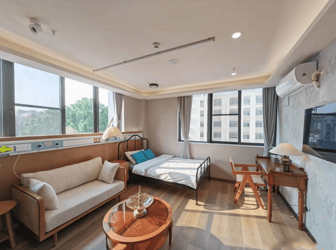 踏入护理院,岭南园林风格的建筑映入眼帘,古色古香又充满韵味。无障碍坡道方便长者出行,智能门禁系统保障安全。这种将自然与适老化改造完美融合的设计,让长者既能享受自然的滋养,又能感受到安全的守护,仿佛找到了一个安心栖息的港湾。
