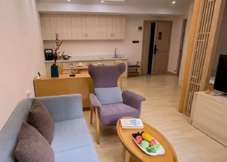 养老院总建筑面积达15000平方米,规划床位460张,采用“小规模、组团式”布局,将居住空间分散于5栋低层建筑中。房间类型涵盖单人间、双人间及三人间,面积从20平方米至65平方米不等,满足不同长者的居住偏好。所有房间均遵循无障碍设计标准:医用级防滑地板、圆角家具、双层扶手走廊、独立卫浴配备紧急呼叫终端与智能监测设备。单人间标配电动护理床与全景落地窗,支持语音控制灯光、空调;双人间朝南布局,采光充足;公共区域设有加宽电梯与防走失定位系统,确保行动自由与安全。