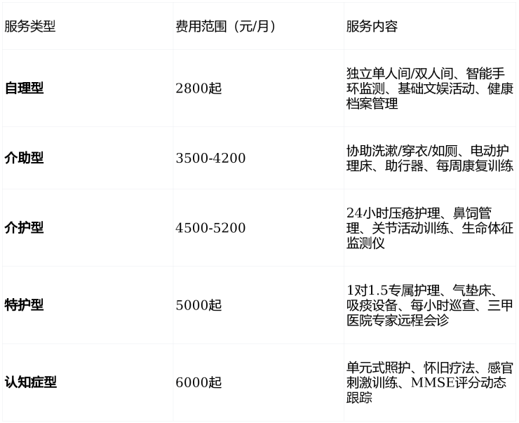 面对广州养老市场月均6000元以上的中高端收费,贵达有爱通过“基础服务费+个性化服务包”的分级定价模式,将月费控制在2800-5500元区间,具体构成如下: