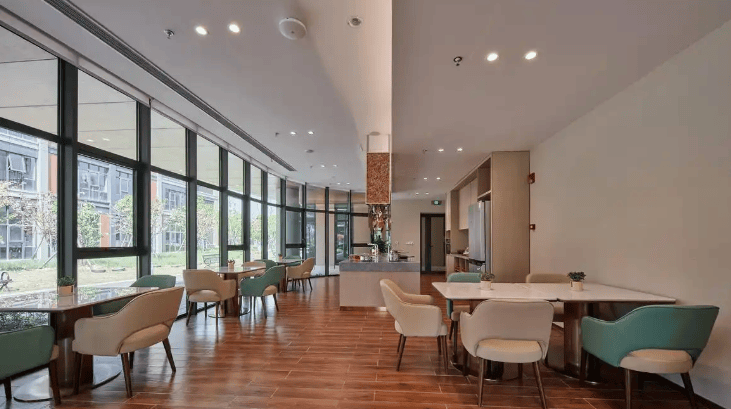 全日制餐厅模式:与传统养老社区餐厅不同,采用全日制模式。从早7点到晚21点,非正餐时间也供应各式面点和中西简餐,灵活又便利。