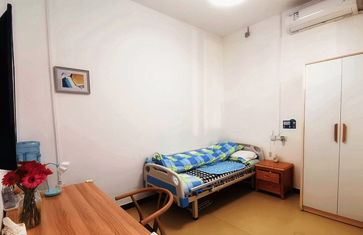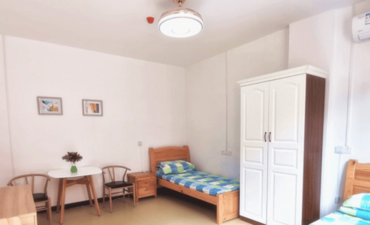 养老院占地面积2369平方米,拥有155张床位,提供单人间、双人间及多人房等多种房型。房间内家具、电视、空调等设施一应俱全,防滑地板、柔和照明及圆角家具设计,从细节处保障长者安全。公共区域的无障碍通道、电梯和紧急呼叫系统,以及浴室的扶手和防滑垫,全方位为长者的日常活动提供安全保障,让长者在这里住得安心、放心。