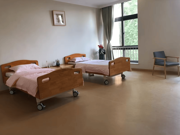 总建筑面积7000平方米,规划床位210张,涵盖单人间、双人间及套房三大户型。单人间面积28-35㎡,配备电动护理床、防压疮气垫及毫米波雷达生命体征监测仪;双人间面积38-45㎡,采用“一室一厅+软隔断”设计保障隐私;套房面积50-60㎡,增设独立厨房、无障碍浴室及阳台。全院防滑地胶达R13级,通道宽度≥1.8米,家具边角圆角处理,走廊设置双层扶手与夜灯系统。公共区域包含500㎡中央庭院、300㎡康复花园及800㎡多功能厅,中央庭院种植银杏、紫藤等植物,负氧离子浓度达2800个/cm³;康复花园设置五行养生步道、感官刺激花园及园艺疗愈区;屋顶花园种植金银花、连翘等药用植物,配备智能灌溉系统年节水超1800吨。