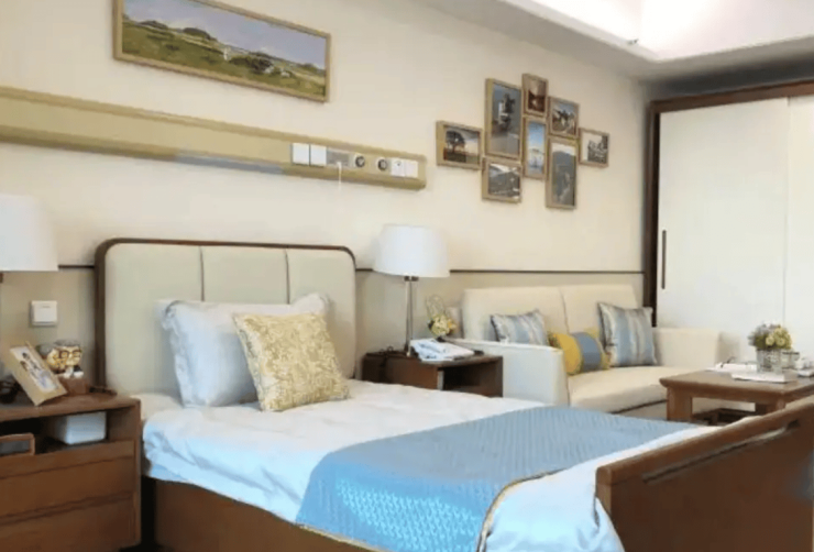 房间采用新中式装修风格,色调淡雅温馨,营造出家一般的居住氛围。全屋贯彻适老化设计理念,防滑地胶覆盖所有区域,走廊宽度达1.8米保障轮椅顺畅通行,房间与公共区域均采用圆角处理避免磕碰。卫生间配备安全扶手与优化高度的坐便器,床边设置紧急呼叫系统,卫浴间采用可平推趟门设计,细节之处全方位保障长者起居安全。