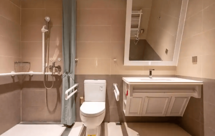 信澜护理院在建筑设计与设施配置上,全程贯穿适老化理念,全方位保障长者的居住安全与生活便利。建筑采用全无障碍设计,从入口到室内各个区域均消除了高低落差,便于轮椅通行与长者平稳行走。走廊宽度达1.8米,宽敞的空间既避免了拥挤,也为轮椅周转提供了充足余地;同时走廊配备双层扶手,适配不同身高长者的扶持需求,助力长者稳定行走,降低摔倒风险。