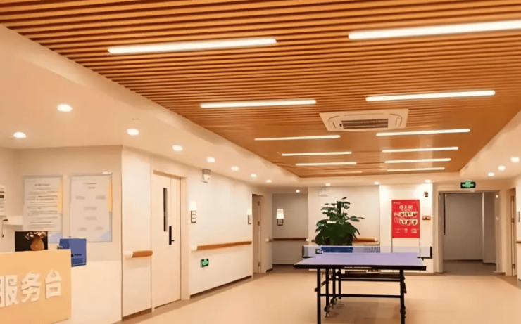 养老院总建筑面积达1.1万平方米,由新加坡设计团队采用“回字形”布局,六栋楼宇通过风雨连廊无缝衔接,形成独立完整的适老化社区。2000平方米的中央花园绿意盎然,绿化覆盖率达40%,年均PM2.5浓度低于25μg/m³,负氧离子浓度达1500个/cm³,堪称天然氧吧。花园内环形步道、恒温泳池、园艺种植区等功能分区明确,既满足长者日常锻炼需求,又提供亲近自然的休闲空间。