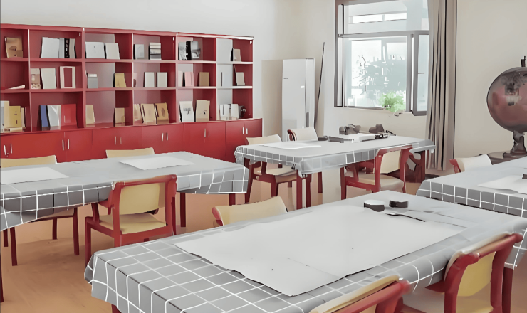 总建筑面积近3万平方米,规划床位700张,涵盖单人间、双人间、三人间及豪华套间。单人间面积25-55㎡,配备独立卫浴、智能护理床与24小时新风系统;双人间采用L型隐私隔断设计,共享客厅与阳台;三人间配置50㎡共享空间,豪华套间增设独立厨房与客厅。所有房间均采用圆角家具、防滑地胶、双层扶手及智能感应照明,床头配置紧急呼叫装置与毫米波雷达跌倒监测手环。公共区域设2000㎡活动中心,包含书画室、棋牌室、影音厅及康复大厅,配备德国MOTOmed下肢康复机器人、中医熏蒸舱等设备,实现“生活-康复-娱乐”一体化空间布局。