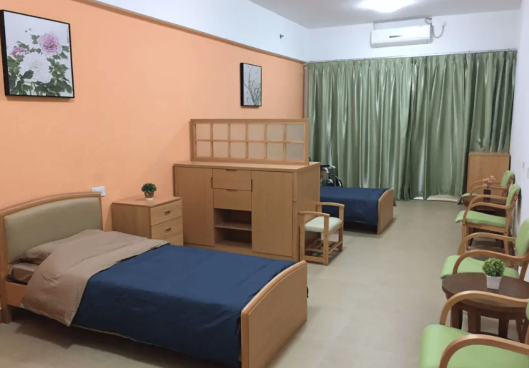 双人间则更注重社交氛围的营造。房间内设有共享客厅,为长者提供了一个交流互动的场所,长者可以在这里与室友聊天、下棋、看电视,增进彼此之间的感情;独立储物柜方便长者存放个人物品,保持房间的整洁有序;适老化厨房则鼓励长者参与简单烹饪活动,厨房配备的防烫伤灶台、自动断电装置等安全设施,在保障长者安全的同时,也让他们能够体验到烹饪的乐趣,增强生活的参与感。