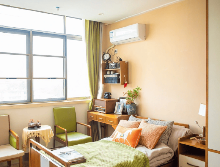 院内提供丰富房型选择,涵盖标准双人房、舒适双人房、江景双人房、标准单人房、舒适单人房、江景套房及豪华江景套房等多种类型。所有房间均采用全方位适老设计,配备防滑地板、圆角家具、适老扶手及床头、卫生间紧急呼叫系统,同时标配空调、电视、独立卫浴等基础设施,部分房型设有独立阳台,江景房型更能让长者沉浸式欣赏珠江美景。