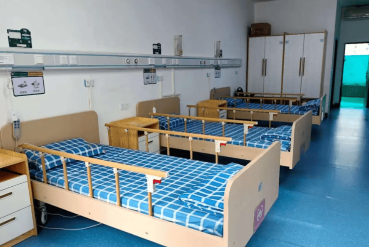 院内规划床位428张,提供单人间、双人间、套房及认知症专区等多元房型选择。单人间面积28—45平方米,配备电动护理床、智能马桶及独立新风系统;双人间35—45平方米,分设独立卫浴与共享客厅,兼顾私密与社交需求;套房面积60—80平方米,增设独立厨房与家庭影院设施,适配家庭式陪护需求。认知症专区采用“组团式”设计,模拟老广州骑楼街景等熟悉场景,增强长者归属感。