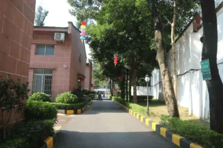养老院总占地面积超1.3万平方米,其中绿化面积达6000平方米,以岭南园林为蓝本打造沉浸式自然空间。环形健康步道贯穿园区,两侧种植四季绿植与药草植物,搭配专属阳光房与屋顶花园,让长者随时能亲近自然。园区全域采用无障碍设计,走廊宽度不小于2米,坡道坡度严格控制在1:12以内,防滑地胶与感应夜灯全面覆盖,从细节处保障长者行走安全。