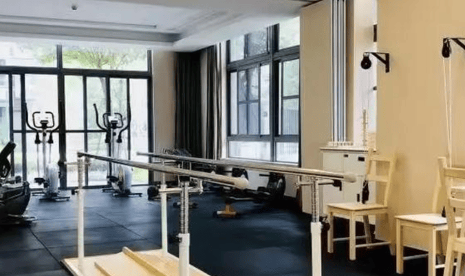 公共区域:阅览室藏书超2000册,茶艺室配备专业茶具,康复训练室引进德国进口设备,所有公共区域均安装新风系统与恒温空调。