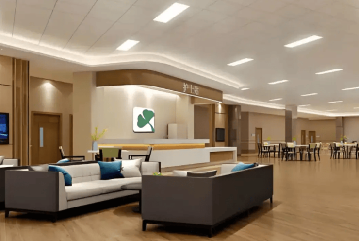 项目占地6000平方米,采用全独立院落设计,建筑布局兼顾功能性与美学性。所有房间以“健康、实用、安全”为核心理念,配备可调节高度的适老化床铺、圆弧处理家具边角、防滑地砖及紧急呼叫系统。全区设置无障碍通道,配置两部医用电梯,确保紧急情况下快速转运。公共区域涵盖棋牌室、书画室、舞蹈室、康复训练室等20余个功能空间,屋顶花园与四季主题景观错落分布,让长者足不出户即可享受自然之美。