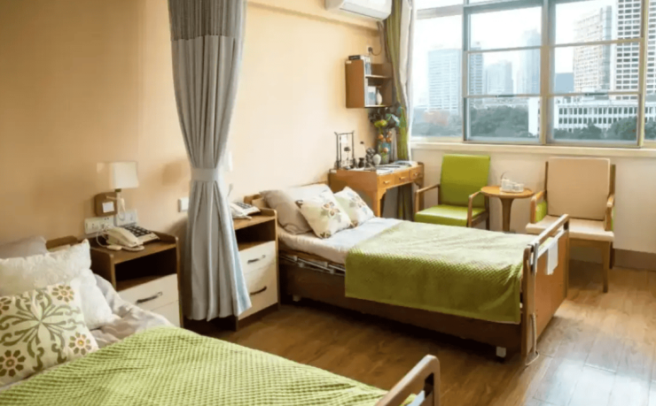 院内房型丰富多元,涵盖单人间、双人间及家庭套房三种类型,满足不同长者的居住需求。单人间面积35-45平方米,配备独立卫浴与观景阳台;双人间25-35平方米,采用分隔式设计兼顾社交与隐私;家庭套房60-80平方米,增设独立厨房与家庭影院,支持家属短期陪护。所有房间融入40余处适老化细节,圆角家具避免磕碰,床头与卫生间紧急呼叫按钮直连护理站,智能夜灯自动感应起夜需求,恒温花洒与防滑地胶全方位保障卫浴安全。