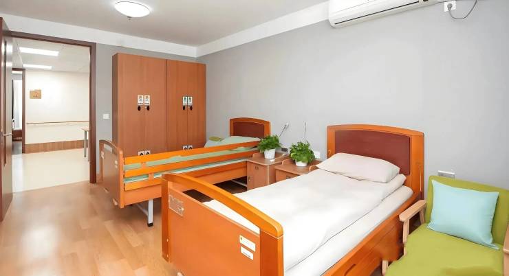 双人间面积在 20 - 25㎡,采用分体式护理床,这种设计既方便了护理人员的操作,又能满足长者的不同需求。例如,当一位长者需要休息时,另一位长者可以自由活动,互不干扰。房间内增设的床头柜,为长者提供了放置个人物品的便利空间,照片、书籍、常用药品等都可以整齐地摆放在这里,让长者随时取用。
