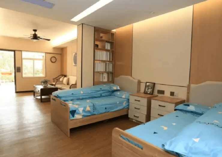 机构备案床位数达874张,提供单人间、双人间、三/四人房及套房四大类房型,满足不同长者的居住需求。所有房型均融入45项适老化设计,全院铺设防滑系数≥0.85的地胶,公共区域与房间内配备L型扶手、夜光标识及毫米波雷达跌倒监测系统,每栋楼均配备长者专用电梯,房间内独立冷暖空调、紧急呼叫系统覆盖率达100%。其中单人间面积25-35平方米,配备独立卫浴与负离子空气净化器;套房面积50-70平方米,增设客厅、厨房及观景阳台,兼顾私密性与舒适性。